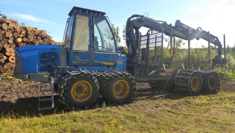 Équipements forestiers (Rottne F13D et John Deere 803MH) avec unité de service et camion